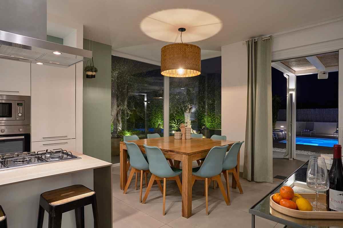 Villa Sariva una delle più belle ville del litorale Ragusano, sia per la vicinanza ad una spiaggia di sabbia che per il design e servizi offerti. La Villa e composta da un immobile di 200 mq su 2 livelli, piano terra e primo piano, piscina di 48 mq, giardino + solarium + parcheggio circa 750 mq La villa si trova a Ispica nella zona di Santa Maria del Focallo nel sud Sicilia, di fronte ad un mare ed una spiaggia bellissima, ideale per i bambini che per lunghe passeggiate. Mare con fondali bassi e caldo Nei dettagli, la villa dispone di 5 camere da letto 3 matrimoniali con la possibilità di aggiungere una culla per bambini o un letto supplementare, 2 camera con 4 letti singoli. con materassi memory foam. Tutte le Camere sono dotati di bagno in camera con nicchia doccia larga 130cm, fornito di asciuga capelli. La cucina soggiorno accessoriata di tutto il necessario per cucinare fino a 12 persone, e dotata di tutti gli elettrodomestici come: lavastoviglie, microonde, forno, bollitore, mixer, macchina del ghiaccio, il tavolo 8 posti a sedere più 3 posti nella penisola della cucina La cucina soggiorno e dotata di ampie pareti in vetro con vista sulla piscina, veranda e giardino, per enfatizzare un maggiore legame con l’esterno ed avere un maggiore controllo delle persone che stazionano in piscina. Altri servizi della casa: Wifi, Smart TV, impianto di allarme, Cassaforte, Barbecue, parcheggio interno per 3 macchine. Piscina: dimensioni 4x12 altezza 140 cm, idromassaggio Jacuzzi a bordo piscina, 8 lettini prendi sole. Veranda: dimensioni 45mq con divano ad angolo e tavolo con 14 posti a sedere. sistema audio diffuso sia in veranda che in piscina, con collegamento Bluetooth. La macchina e richiesta ristorante più vicino a 2.5km Pozzallo Centro Citta a 6 Km il prezzo varia in basa al numero delle persone, il prezzo riportato si riferisce fino ad un massimo di 6 persone, superiore a 6 persone viene calcolato l'ospite aggiuntivo. ******PISCINA RISCALDATA****** Servizio extra riscaldamento piscina: 500 euro a settimana, da dicembre a Marzo. resto dell'anno 300 euro a settimana non obbligatorio: questo servizio e su richiesta 1 settimana prima del check-in. temperatura dell'acqua da 28/29 gradi nel periodo invernale. La sera la piscina deve essere coperta per evitare che la temperatura dell'acqua scenda. Il prezzo mostrato in tabella potrebbe subire variazioni per richieste superiori a 8 ospiti. Luglio e Agosto prezzi per 10 persone